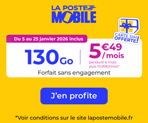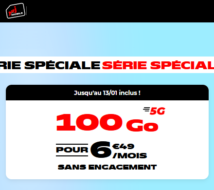 Itinérance Pays inclus Itinérance Pays inclus Itinérance Pays inclusAucun🇩🇿 Algérie (7)🇦🇩 Andorre (15)🇨🇲 Cameroun (4)🇨🇮 Côte d'Ivoire (4)🇲🇱 Mali (3)🇲🇦 Maroc (5)🇲🇨 Monaco (44)🇸🇳 Sénégal (6)🇨🇭 Suisse (10)🇹🇳 Tunisie (7)🇹🇷 Turquie (6) Données (Go) Données (Go) réinitialiser Prix (€/mois) Prix (€/mois) réinitialiser Nos préférés Nos préférés 🔥 Bon choix (27) 5G 5G oui (44)option (5) 🕵️ NRJ Mobile, forfait 5G illimité/100Go à 6,49€/mois🔥 CDiscount Mobile, forfait 5G illimité/250Go à 8€/mois🔖 Youprice (SFR), forfait illimité/150Go à 8€/mois🔖 Youprice (Bouygues), forfait illimité/50Go à 7€/mois🔥 La Poste Mobile, forfait 5G illimité/200Go à 7,5€/mois (6 mois)🔥 La Poste Mobile, forfait 5G illimité/300Go à 10€/mois (6 mois)🔥 La Poste Mobile, forfait 5G illimité/130Go à 5,50€/mois (6 mois)🔖 Free mobile, forfait 5G illimité/110Go à 9€/mois (1 an) 123…910Suiv