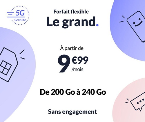 ❗ Prixtel, forfait 5G illimité/de 300Go à 340Go dès 10€/mois🔖 B&You, forfait illimité/80Go à 8€/mois (1 an)🔥 Auchan Telecom, forfait illimité/60Go à 5€/mois🔥 Prixtel, forfait 5G illimité/de 40Go à 80Go dès 6€/mois🔖 Prixtel, forfait 5G illimité/de 200Go à 240Go dès 10€/mois🔥 Syma Mobile, forfait illimité/120Go à 7€/mois🔥 Syma Mobile, forfait 5G illimité/200Go à 9€/mois🔖 Syma Mobile, forfait illimité/40Go à 6€/mois🌍 B&You, forfait 5G Voyage 250Go à 17€/mois🔥 Youprice (Orange), forfait 5G illimité/180Go à 9€/mois🔥 Youprice (Orange), forfait 5G illimité/250Go à 11€/mois🔖 Auchan Telecom, forfait 5G illimité/180Go à 9€/mois🔥 Auchan Telecom, forfait illimité/120Go à 7€/mois🇨🇭 Red by SFR, forfait illimité/1Go + 20Go en Suisse à 7€/mois🔥 CDiscount Mobile, forfait 5G illimité/300Go à 13€/mois🔖 NRJ Mobile, forfait illimité/20Go à 5,50€/mois🔖 Youprice (SFR), forfait illimité/150Go à 8€/mois🔖 Youprice (Bouygues), forfait illimité/50Go à 7€/mois🔥 La Poste Mobile, forfait 5G illimité/200Go à 7,5€/mois (6 mois)🔥 La Poste Mobile, forfait 5G illimité/300Go à 10€/mois (6 mois)🔥 La Poste Mobile, forfait 5G illimité/130Go à 5,50€/mois (6 mois)🔖 Free mobile, forfait 5G illimité/110Go à 9€/mois (1 an)🔖 Red by SFR, forfait 5G illimité/80Go à 8€/mois🔖 Sosh, forfait illimité/100Go à 10€/mois🔖 B&You, forfait 5G illimité/120Go à 12€/mois🔥 CDiscount Mobile, forfait 5G illimité/200Go à 10€/mois🔖 Youprice (Bouygues), forfait illimité/100Go à 10€/mois🔖 Youprice (Bouygues), forfait illimité/200Go à 13€/mois🔖 CDiscount Mobile, forfait illimité/1Go à 2€/mois🔖 Red by SFR, forfait 5G illimité/250Go à 13€/mois🔖 Auchan Telecom, forfait 5G illimité/300Go à 13€/mois🔥 Coriolis Telecom, forfait illimité/120Go à 7€/mois🔥 Prixtel, forfait 5G illimité/de 150Go à 190Go dès 8€/mois🔖 Coriolis Telecom, forfait 5G illimité/200Go à 10€/mois🔖 Réglo Mobile, forfait 5G illimité/200Go 10€/mois🔖 Youprice (SFR), forfait 5G illimité/200Go à 9€/mois🔥 Lebara Mobile, forfait 5G illimité/250Go à 9€/mois🔥 Lebara Mobile, forfait illimité/50Go à 6€/mois🔖 NRJ Mobile, forfait 5G illimité/200Go à 12,5€/mois🔖 Coriolis Telecom, forfait 5G illimité/350Go à 15€/mois🔥 NRJ Mobile, forfait illimité/100Mo à 1,5€/mois🔖 Sosh, forfait illimité/5Go à 6€/mois🕵️ NRJ Mobile, forfait 5G illimité/150Go à 7,49€/mois🔥 NRJ Mobile, forfait 5G illimité à 17,49€/mois🔥 Red-by-SFR, forfait illimité/1Go à 2€/mois🌍 (clients) SFR, forfait Voyage 5G+ illimité/250Go à 22€/mois🔗 (clients) Free, forfait illimité/5Go à 4€/mois🔖 Prixtel, forfait 5G illimité/de 300Go à 340Go dès 13€/mois🔖 Syma Mobile, forfait 5G illimité/300Go à 13€/mois🔖 Réglo Mobile, forfait 5G illimité/300Go à 13€/mois🔖 Réglo Mobile, forfait illimité/20Go à 6€/mois🌍 B&You, forfait 5G Voyage 300Go à 20€/mois🌍 Sosh, forfait 5G Voyage 200Go à 16€/mois🔖 CDiscount Mobile, forfait illimité/10Go à 5€/mois🔖 Red by SFR, forfait illimité/10Go à 6€/mois🔥 Youprice (SFR), forfait illimité/40Go à 5€/mois🕵️ CDiscount Mobile, forfait illimité/20Go à 5€/mois🔖 B&You, forfait illimité/5Go à 6€/mois🔥 Youprice (Orange), forfait illimité/40Go à 7€/mois🕵️ CDiscount Mobile, forfait 5G illimité/160Go à 9€/mois🔖 Sosh, forfait 5G illimité/300Go à 21€/mois🔖 B&You, forfait 5G illimité/200Go à 14€/mois🔖 (18-26 ans) Orange, forfait 5G illimité/120Go à 15€/mois🔖 Sosh, forfait bloqué 2h/1Go à 2€/mois🔗 (clients) Orange, forfait 5G illimité/20Go à 11€/mois🔖 Auchan Telecom, illimité/1Go à 2€/mois (sans limite)🔖 Free Mobile, forfait 5G illimité/350Go à 19,99€🔗 (-18 ans) Orange, forfait ado illimité/5Go à 6€/mois🔗 (clients) Free, forfait 5G tout illimité à 10€/mois🔖 B-and-You, forfait 2H/1Go à 2€/mois🔥 Lebara Mobile, forfait 5G illimité/350Go à 12€/mois🔗 (clients) Free, illimité/1Go à 0€/mois (sans limite)🔖 Free mobile, forfait illimité/1Go à 2€/mois🔖 Source Mobile, illimité/80Go à 10€/mois (sans limite)🌍 Red by SFR, forfait Voyage 5G illimité/350Go à 20€/mois🔗 (clients) SFR, forfait 5G illimité/200Go à 15€/mois 76 forfaits trouvés Tri-2 Trier le contenutri par quantité de Go décroissantetri du - cher au + chertri par date de publication Prix (€/mois) Prix (€/mois) réinitialiser Données (Go) Données (Go) réinitialiser Nos préférés Nos préférés 🔥 Bon choix (29) 5G 5G oui (43)option (8) Réseau Réseau Bouygues (30)SFR (29)Orange (11)Free (6) Itinérance Itinérance ItinéranceAucun🇲🇨 Monaco (47)🇦🇩 Andorre (16)🇨🇭 Suisse (11)🇩🇿 Algérie (8)🇹🇳 Tunisie (8)🇸🇳 Sénégal (7)🇹🇷 Turquie (7)🇲🇦 Maroc (6)🇨🇮 Côte d'Ivoire (5)🇨🇲 Cameroun (5) eSIM eSIM oui Durée tarif promotionnel Durée tarif promotionnel sans limite (71)6 mois (3)12 mois (2) Search Rechercher Effacer Appels vers l'international Appels vers l'international oui (11) Frais SIM + résil. Frais SIM + résil. 0105679+ Afficher 3 plus réinitialiser Existe aussi en application Meilleur Forfait Mobile Comparez aussi les box internet fibre ou 4G/5G